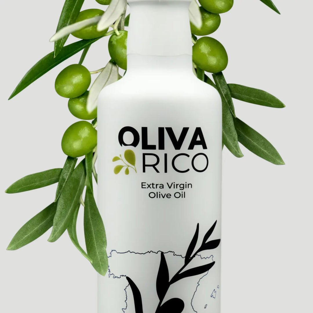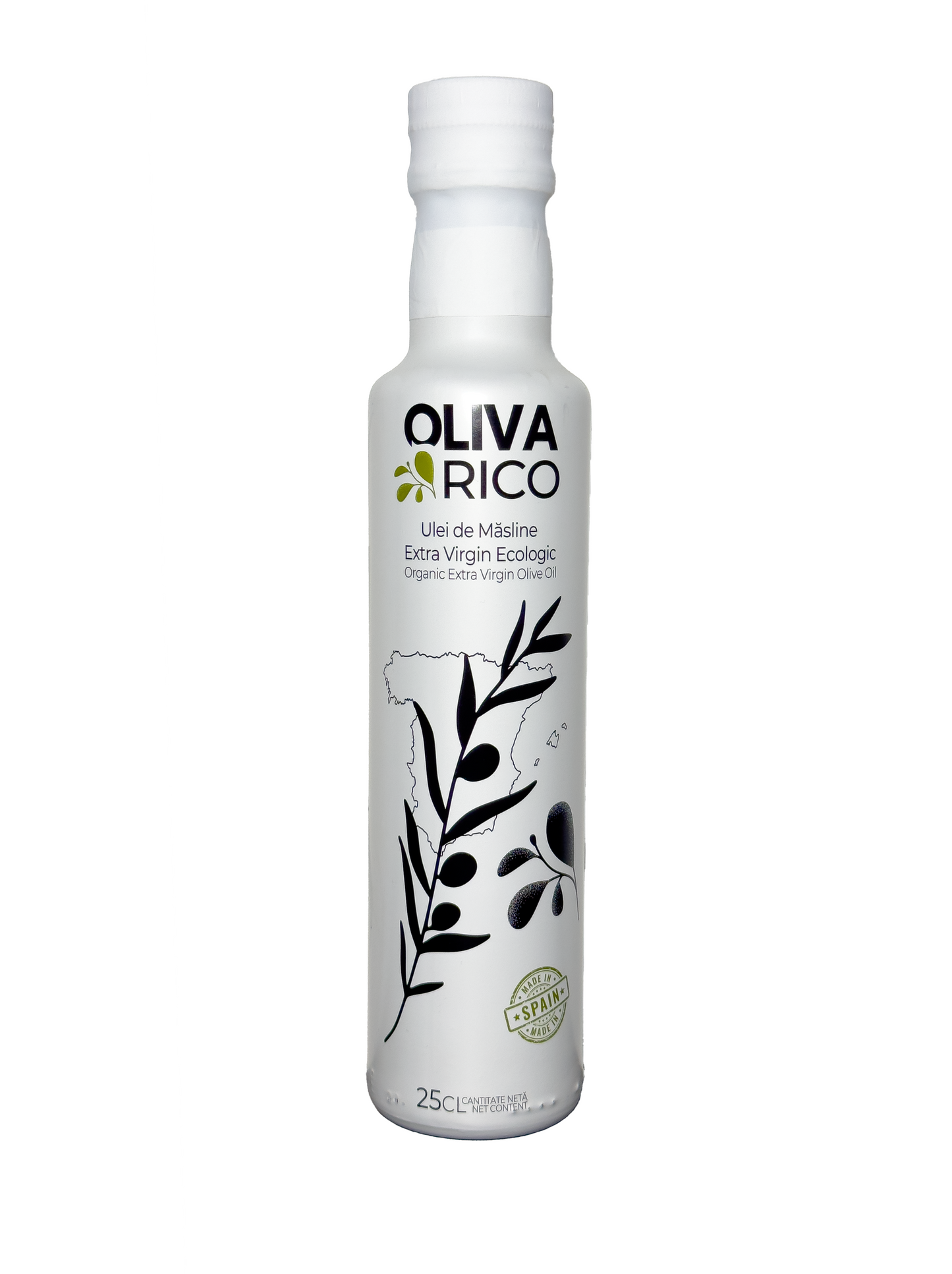 Ambalaj Elegant și Rezistent: Sticla de măsline Oliva Rico este împachetată într-un recipient elegant, ce păstrează prospețimea și aroma intensă până la ultima picătură.